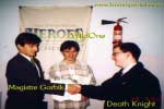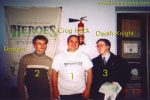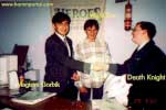 Вот они, победители Первого Киевского открытого турнира по игре "Heroes of Might & Magic 4"! На их месте могли быть Вы! (А вместо огнетушителя - могла быть Ваша реклама). На фотографии слева на право: Dragon (2 место), CragHack (1 место), Death Knight (3 место).